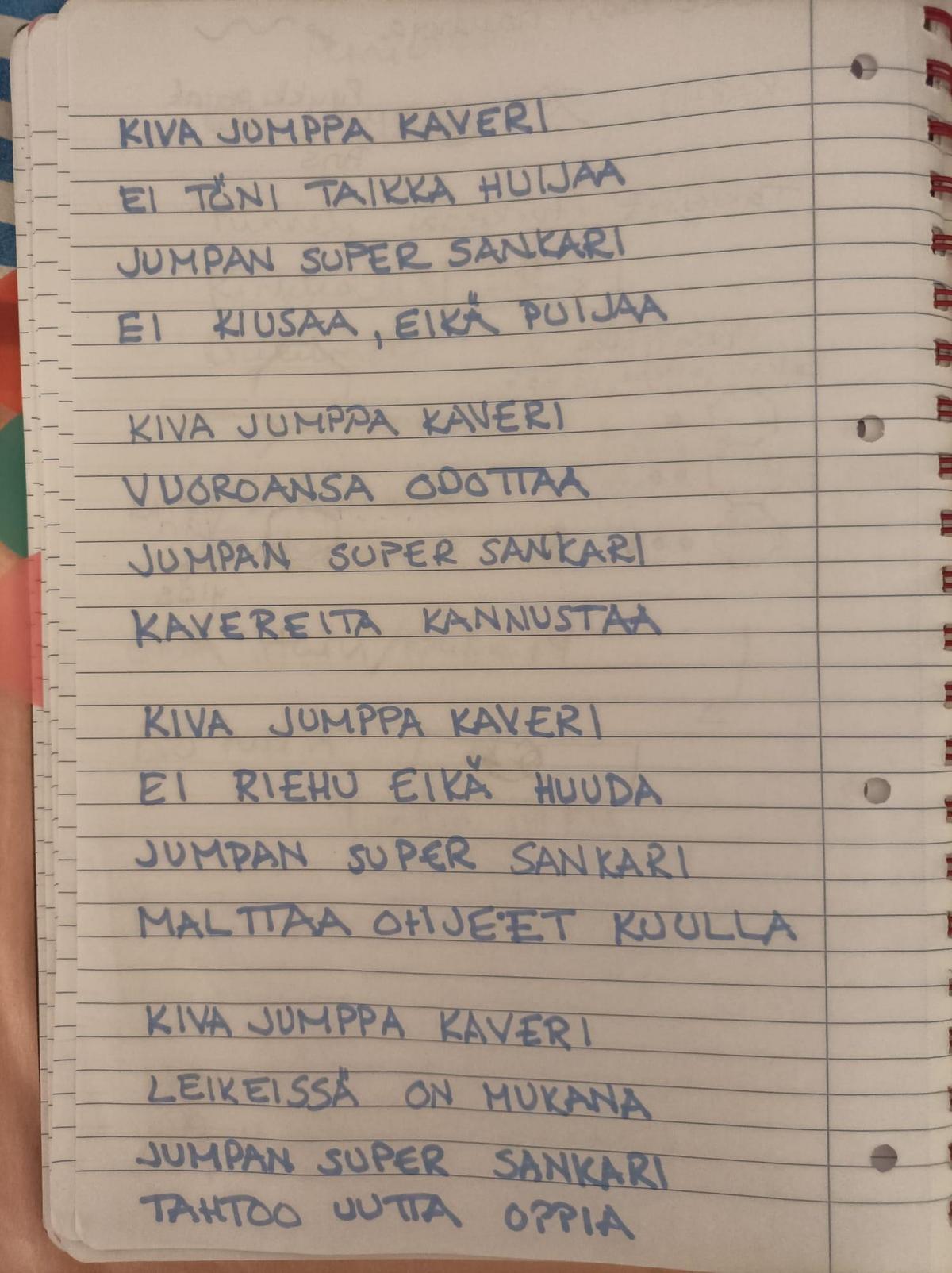 Lasten ja nuorten ryhmissä on otettu käyttöön pelisääntökeskustelut. Jokaisessa ryhmässä sovitaan omat pelisäännöt tunneille.
